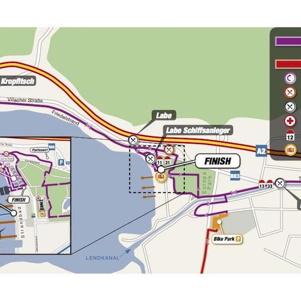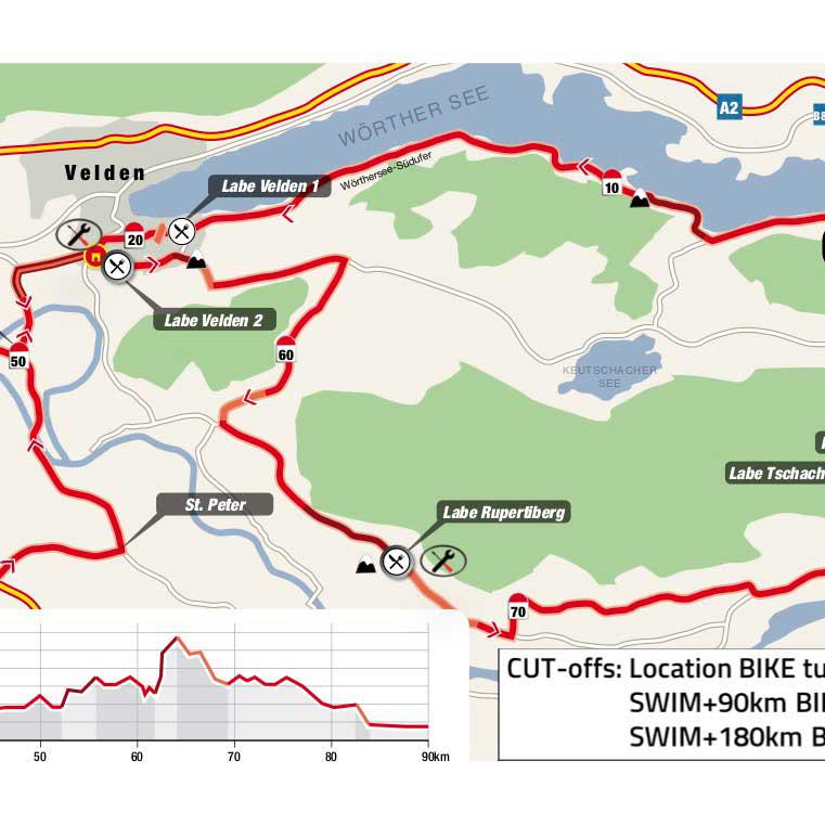 The cycle route of the previous "Iron Man Carinthia", one of the largest cycling events in Carinthia, leads from Klagenfurt to Lake Faak, with some loops, mountain routes, passes and along Lake Wörthersee, a 90 km loop that has to be cycled twice . (The Iron Man tour is of course also listed in our tour folder)